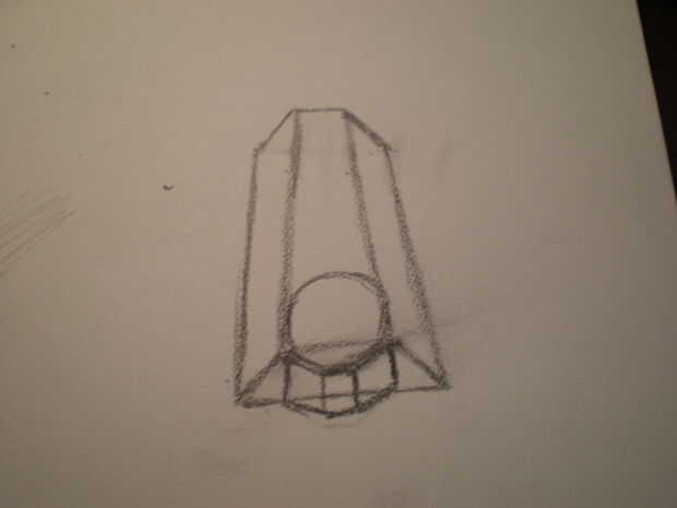 Dibujar una forma similar a la de una imagen en la base de la "nariz" en la parte inferior del trapecio más pequeño. el piso superior debe ejecutar tangente al círculo.