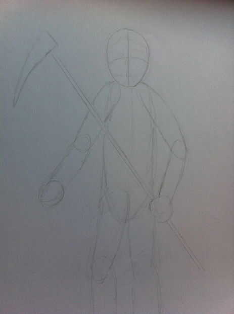 En primer lugar, esbozar hacia fuera el contorno de la figura. Sólo dibujar el cuerpo desnudo de ahora (sin capa) y elaboración de cada miembro, hacerlo en forma de salchicha. Esto debería facilitar al entrar en detalle.