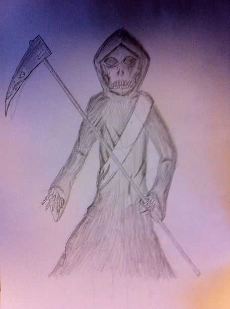 Ahora dibujamos las piezas finales a la Parca. Agregar una gran cantidad de sombreado, más oscuro en los bordes pero más hacia el centro. Esto mejorará la imagen mucho más. En cuanto a la calavera, hacer el sombreado más oscuro en la parte superior y gradualmente más ligero a medida que avanza hacia abajo.
