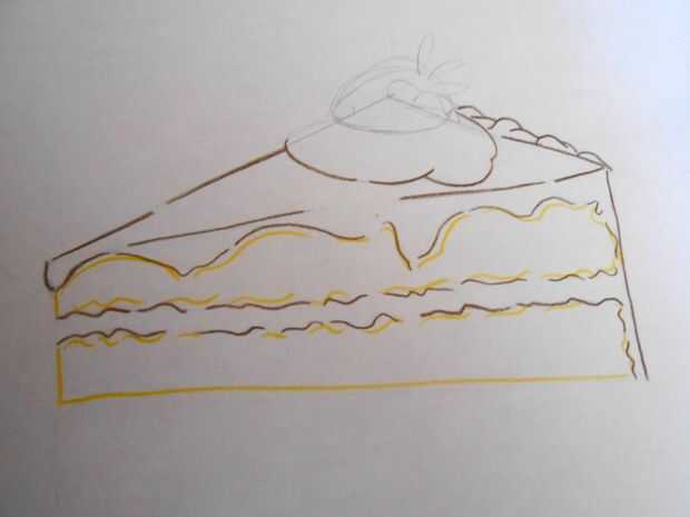 Contorno de la torta con el lápiz amarillo. (Foto 2)
