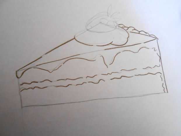 Cómo dibujar una rebanada de pastel Kawaii (4 / 9 paso)