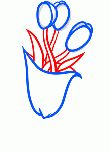 Dibujar en los tallos y luego añadir algunas hojas de hoja larga agradable. Usted también necesitará dibujar la línea de abrigo detrás de los tallos de las flores.
