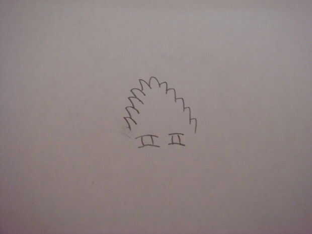 Usando un lápiz afilado, marque ligeramente los 2 ojos. Sólo dibujar dos líneas ligeramente curvas y conectarlos. Ahora para el "pelo". Para dibujar, hacer una serie de "formas de hoz va sobre la otra. Para simplificar las cosas, basta con mirar la foto!