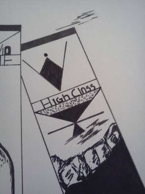 Acabado el descanso basado en las imágenes. Dibujar una línea divisoria en la parte inferior para su firma. Después de que termine el vidrio (el vidrio es burbujas). Un poco abajo dibuje una línea de la onda, con hielo en él. Ver fotos de referencia.
