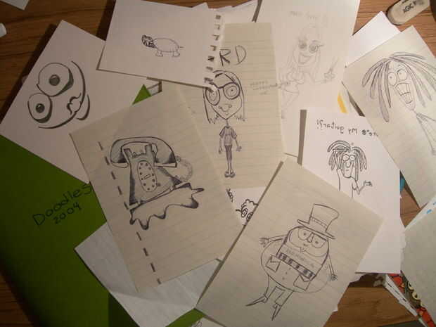 Doodle de izquierda y la derecha todo el tiempo y hacer un punto para no salvar sus garabatos en una carpeta importa cómo de descerebrados o simples que sean. Después de algún tiempo, volver atrás y mirar a través de los garabatos. Elegir tus favoritos y volver a dibujarlos, ver lo que puede mejorar y terminar tal vez en papel bonito con una pluma de dibujo.