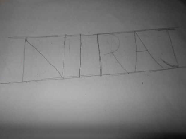 Ahora, ampliar sus cartas de línea en letras estilo. Puede ayudar a trazar una línea guía en la parte superior e inferior de las letras para un seguimiento. En mi caso he construido las mayúsculas centrados alrededor de la letra de la línea como en la "A" si es posible. Para las otras letras como la "N" y la "J", construí la letra apagado a la derecha de la letra de la línea. A trabajar su camino a través de las letras haciendo su mejor esfuerzo para equilibrar el espaciado.