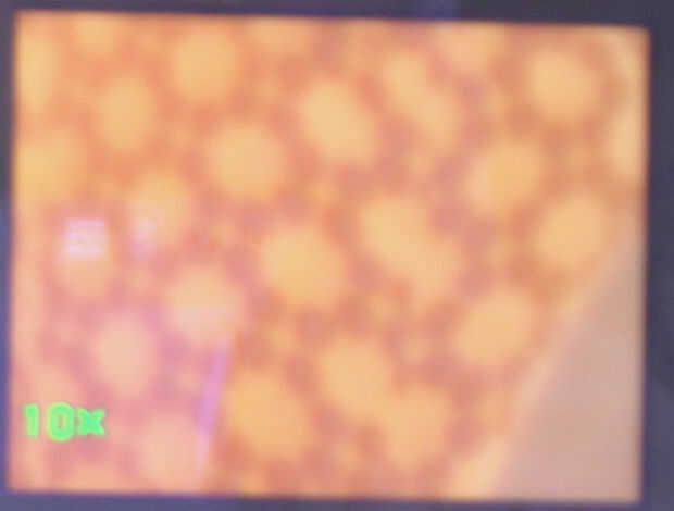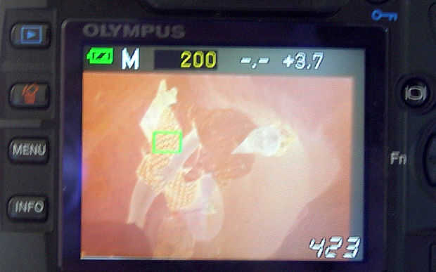 Una réflex digital tiene la característica útil de aumento la imagen x10 y centrándose en un detalle.
