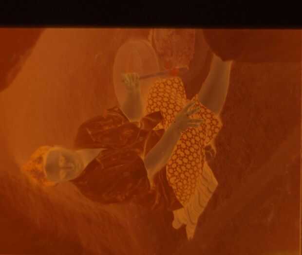 La negativa fue fotografiada con un proyector de diapositivas a una velocidad de 1/200 seg.