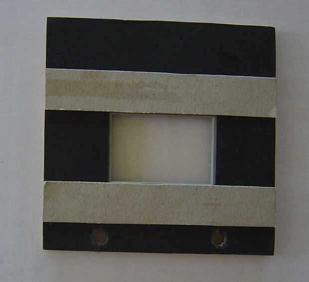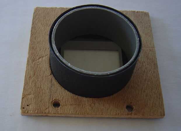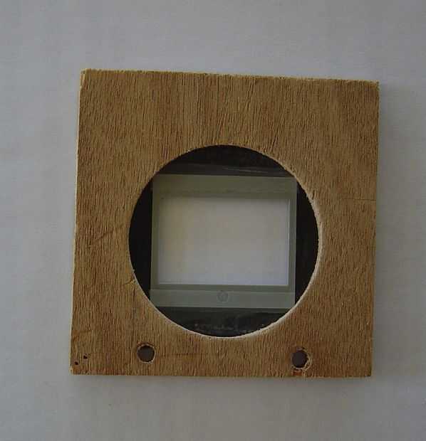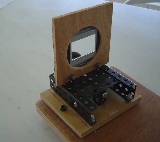 El sostenedor de la película está hecha de cartón y es apoyado por un pedazo de madera contrachapada fina.