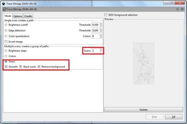 Si tu dibujo tiene sólo dos colores (blancos y negro) seleccionados dos colores, seleccione eliminar fondo y establecer la opción para las canas.