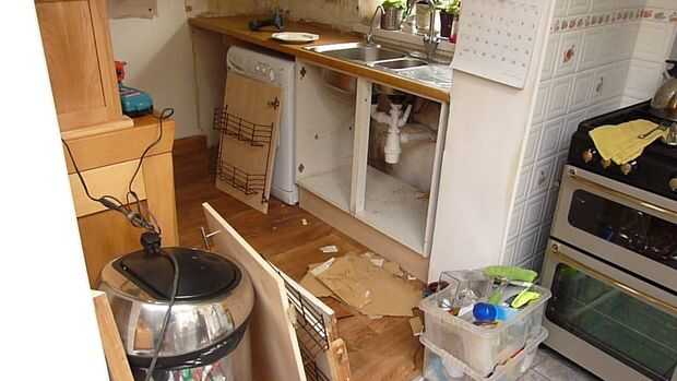 IMPORTANTE: Haga todas las modificaciones a su nueva unidad de fregadero antes de rasgar su viejo uno. Esto es porque barnizar y pegar tarda en secar correctamente y usted tendrá que utilizar su antigua cocina durante este tiempo.