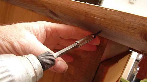 Un triángulo en forma de pieza de madera de pino fue atornillado y pegado en la parte posterior de la unidad para apoyar la madera saliente y habilitar la unidad para ser empujado al ras con las paredes.