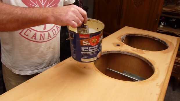 Paso 7: Los agujeros en la superficie de trabajo de corte, coloración y barnizado.