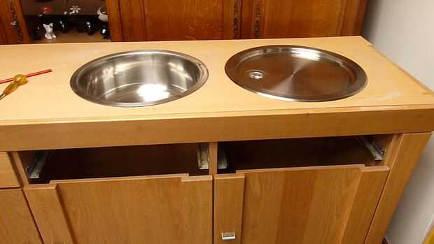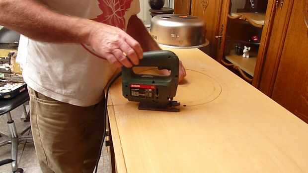 Decidir donde puede caber su fregadero, teniendo cuidado de asegurarse de que no se traslapa los lados en los armarios y tenga suficiente espacio para permitir que las fijaciones a utilizar bajo fregadero y escurridor. Para cortar el agujero, colocar el fregadero hacia arriba y el palero en la superficie de trabajo y comprobar que los orificios a los lados. Ubicar el centro del círculo dibujado usando una regla y lápiz de varias líneas dibujadas cruzadas y tornillo auto forma cónica en el centro. Ate un cuerda a un lápiz o bolígrafo y ajustar un poco más ancha que el diámetro exterior del recipiente, excepto la brida. Esta mide 15 mm menos la brida en mi caso. Perfore un agujero cerca de la nueva línea de lápiz y recortar el círculo con una sierra de vaivén, lo mismo palero o si recomendado: marca hacia fuera para el lavamanos rectangulares tradicionales la forma con la regla para todos los tuyos.