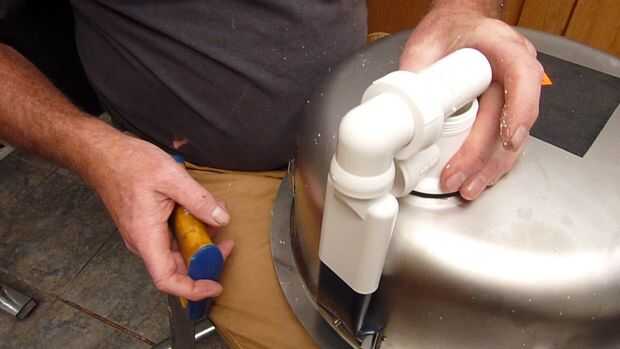 Estos son atornillados y sellados con silicona o un empaque, dependiendo de qué tipo de compra. Se necesita hacer agujeros en la madera contrachapada de la parte posterior de la unidad para permitir que la tubería para conectarse a la tubería existente. Usé un tubo flexible para el principal residuo y mangueras para acoplar el lavavajillas y palero a la basura. Todos estos fueron en el exterior de la unidad y lo único visible era el espacio de guardar perfil bajo residuos trampa al asegurar el desbordamiento que necesitará la Junta curvada para un fregadero redondo y la junta plana para un lavabo cuadrado.