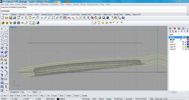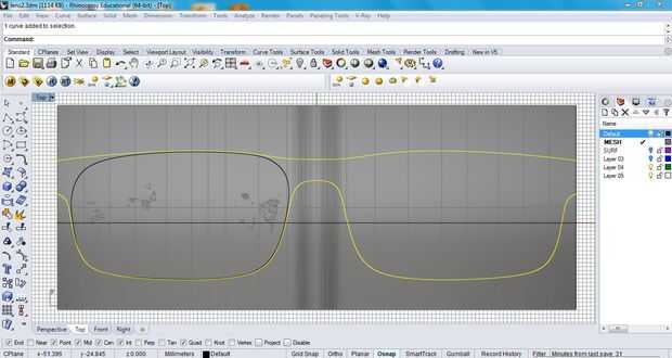 Offset de la curva que dibujó sobre la superficie de la lente por el grosor de la lente, y luego cada una de esas curvas compensadas por 1.5-2mm para el espesor del marco.