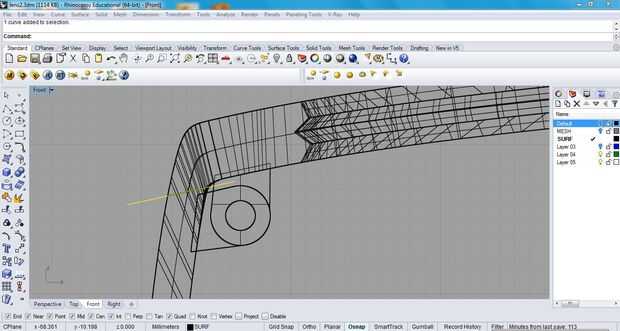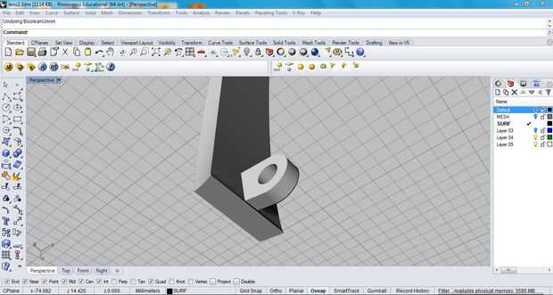 Antes de la Unión booleana, traza una curva en el brazo en el espacio entre la bisagra. Utilice esta curva para dividir el brazo de la estructura. Entonces la Unión booleana la bisagra apropiada piezas para el marco y el brazo.