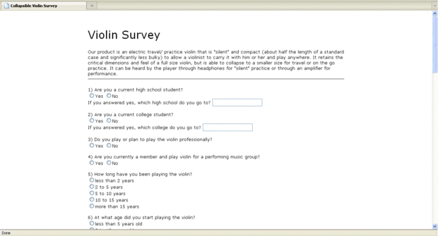 Este tipo de investigación le dará una sensación más realista de lo que funciona y qué no en el mundo real. Esperamos que estas observaciones conduce a algunas ideas únicas y verdaderamente inesperados. Por ejemplo, si encuentras a gente han estado utilizando las soluciones existentes de manera no previsto (o han estado usando en el revés), que es un resultado muy útil que usted puede construir en. Para mi proyecto de violín portable, yo por correo electrónico una encuesta a los miembros de la orquesta en mi escuela. Una vez tuve un prototipo de trabajo fui a una reunión de la orquesta y se reunió con algunos violinistas uno en uno para obtener información más directa.