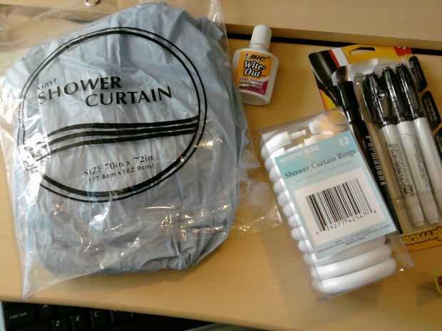 Marcadores permanentes negros - las cortinas de ducha están hechas de vinilo, razón por la cual utilizar marcadores permanentes color en él. Previamente tuve que diseñar un cartel grande para un evento de club de la escuela usando un mantel grande, pero las partes de la pintura acrílica agrietado fuera como el viento lo mueve alrededor. En este proyecto, en el paquete de cuatro de los marcadores que compré, sólo uno se quedó sin tinta. PRUEBA a obtener grasa punta marcadores, si está tratando un área grande del color. Cincel con punta de unos son perfectos.