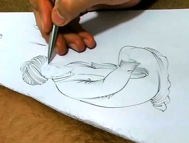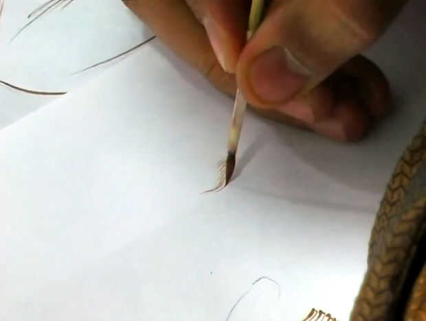 En esta parte sólo enseñarle dibujos de cepillo de pelo de pelo y familiarizarse con la tensión en la cara para dibujar el cabello. Trate de sostener el cepillo de pelo libremente. Estas son las mismas líneas que dibujar con lapiz y no hay diferencias entre ellos. El final del cepillo de pelo se suelte. (Figura 16)