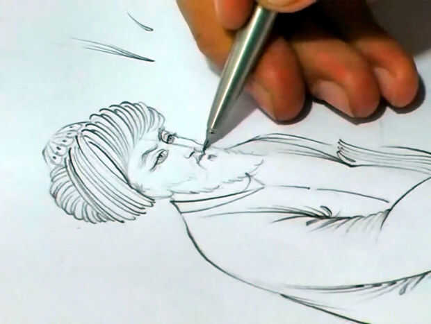El punto importante en el dibujo una cara de hombre o mujer es trazando líneas de pelo. Si es hombre la barba y las cejas y si es mujer dibujo pelo causa más belleza en la cara. Para el cabello mejor dibujo necesita trazar línea regular y elegante que además de unos a otros. Ver que si se trata de una línea de labios, la barba se iniciará desde esta parte. (Figura 13)