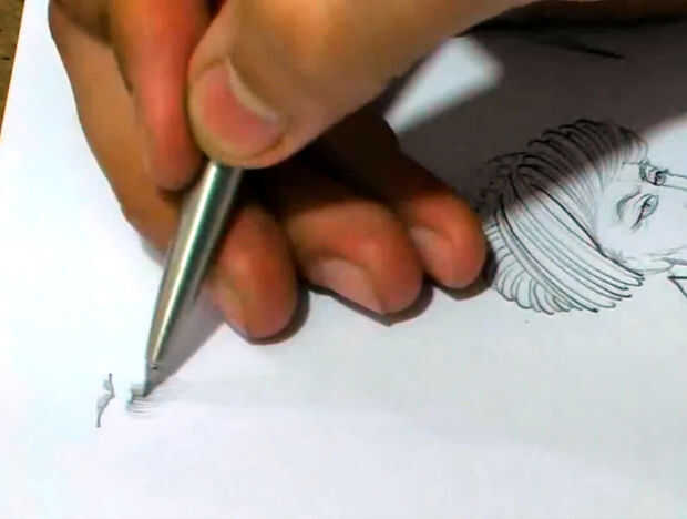 Cuando dio vuelta a una forma, otras formas de seguirlo. Si nos fijamos en el pelo que se dibujan en esta imagen con cuidado, verá que líneas oscuras Coloque además mutuamente elegantemente y algunas tensiones en el extremo de la barba. (Figura 17)