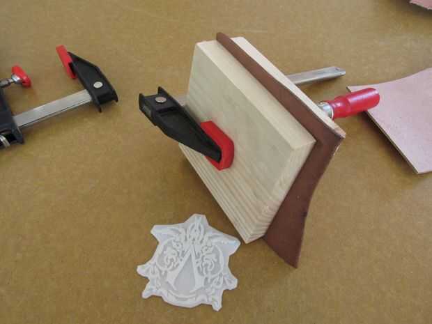 Una vez que has tenido unos instantes para admirar su trabajo, re-abrazadera sólo el cuero entre los dos bloques de madera. Esto ayudará a eliminar arrugas o distorsión ligera que podría han sido impartido al cuero como resultado del proceso de sellado. Permita que la piel permanezca afianzado con abrazadera así para otra hora o así y terminarás con un diseño perfectamente plano listo para ser implementado en cualquier número de proyectos.