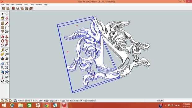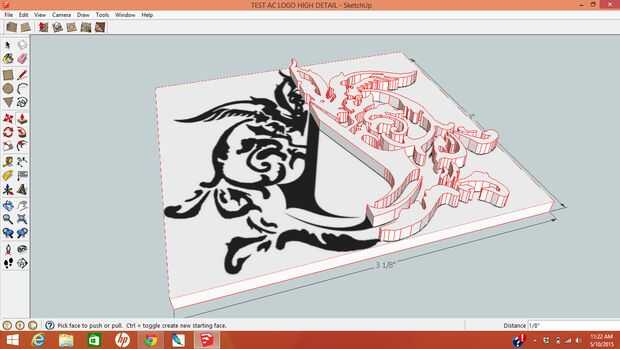 Una vez que todo está trazado está listo para empezar a sacar las distintas formas de trazado en 3 dimensiones para crear la superficie de sellado. Dependiendo del programa de diseño 3D que se utilizan puede tener un método diferente de lograrlo, pero si usas SketchUp todo que tienes que hacer es utilizar la herramienta PUSH/PULL para asir las formas que trazó y tire hasta la altura adecuada. Generalmente saca el sello hasta 1/8 "de altura, esto le da mucha profundidad a hundirse en la piel durante el sellado.