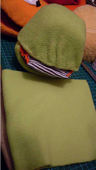 Coser a la parte superior de la cabeza y la barbilla hasta que tenga una "manga" para la mano quepa. Utiliza un trozo más corto de paño grueso y suave entonces Únete una manga más larga con otra tela para salvar a lana.