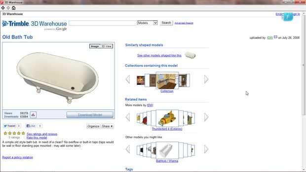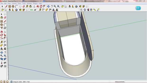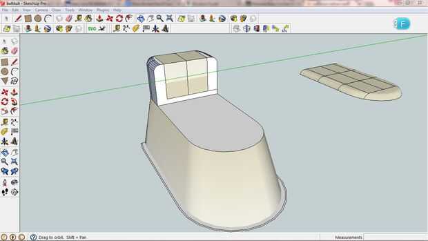 - Para empezar me abrió un modelo 3d de una bañera, en sketchup y quitado los pies de la bañera.