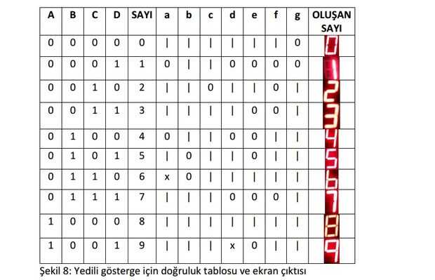Esta imagen muestra lo que uso para indicar 0 al número hexadecimal F con control de pines de la pantalla de siete segmentos. En la foto, se puede ver | signo significa lógica alta y X medios bajo lógica.