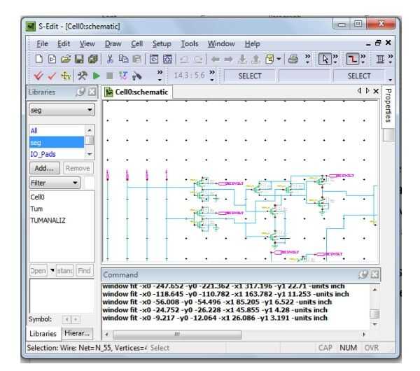 En S-editar, he seleccionado los productos N-MOS y P-MOS a hacer el circuito rápido. Esto es necesario porque antes de ir al lado químico de tus fichas, necesita mostrar que los nodos del esquema están trabajando muy bien. Si no podía mostrar el uso correcto de su circuito en vista esquema, no es cierto progreso al lado químico de tu chip.