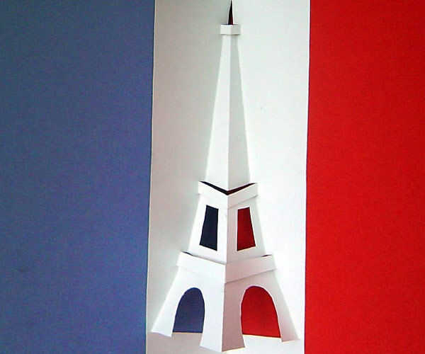 La Torre Eiffel en la foto es un ejemplo de simétricos triángulos dibujados en diferentes ángulos y el camello muestra una forma de triángulo que se corta, su doblez las líneas no tienen que ir todo el camino hasta el pliegue principal, usted puede cortar en cualquier lugar de doblez de Valle, sobre la montaña para el siguiente doblez de Valle, como convergen todas las líneas de doblez "virtual" en la tapa principal. Se me puede ver hacer la Torre Eiffel aquí.
