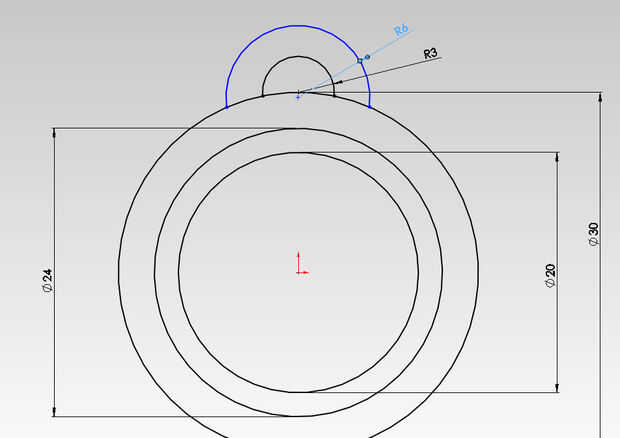 Sorteo dos medio cirkels con el grueso de pared mínimo entre ellos en la parte superior. Por cierto, mi bosquejo está en milímetros.