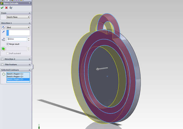 Utilizar el mismo bosquejo para otra extrusión. Saca todo excepto la parte media 3 mm (o 1 mm de espesor de pared mínimo) hacia el frente.