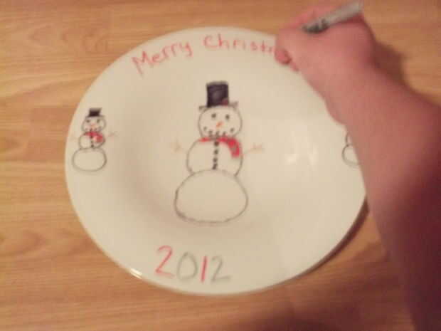 Usar los marcadores Sharpie y escribe o dibuja lo que quiere en su plato o taza.
