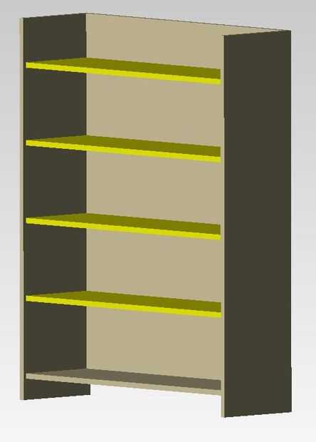 ¿Listo para agregar los estantes? ¿Cuántos estantes? Si continuamos como hicimos para los lados e inserta 4 o 5 copias de la plataforma, tendríamos que restringir cada uno de ellos. Por lo tanto, como el perro perezoso, vamos a insertar y restringir un solo estante y utilice la función de patrón lineal para crear el resto de los estantes.
