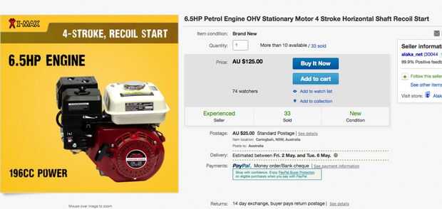 - Motor (Estamos usando un motor de podadora que puede apagar un cortacésped viejo o mira en eBay por unos pocos dólares)
