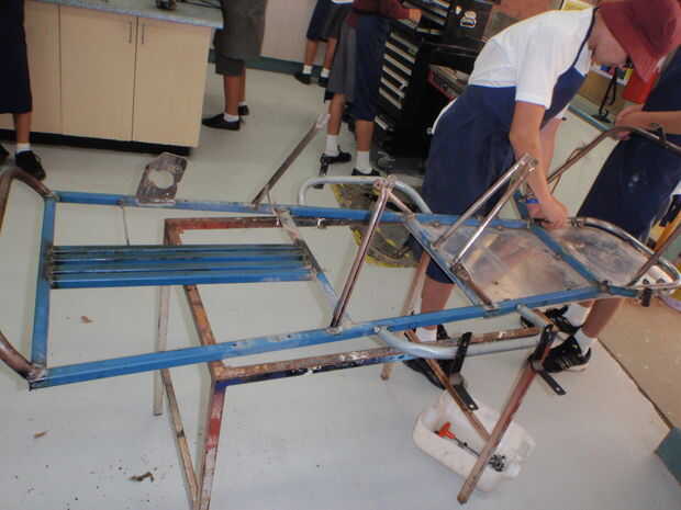 - El marco debe ser limpiado con un solvente para remover cualquier aceite o grasa y dado una rápida de arena para ayudar a la pintura "clave" a la superficie del acero.