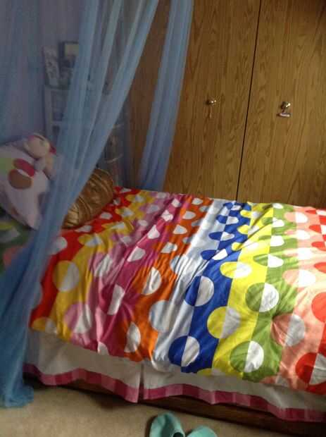 una niña pequeña, ella tiene 4 años ahora. Siempre dijo que ella es una princesa. Por lo tanto, quería decorar su habitación, que es ensueño y lleno de color rosa.En la pared izquierda, hay un gabinete corto. Ella puede poner muñecas y libros en él.