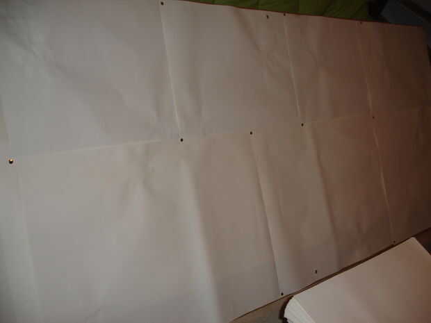 1. tablero de la cubierta con papel blanco - usamos tachuelas para sujetar el papel!
