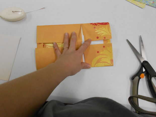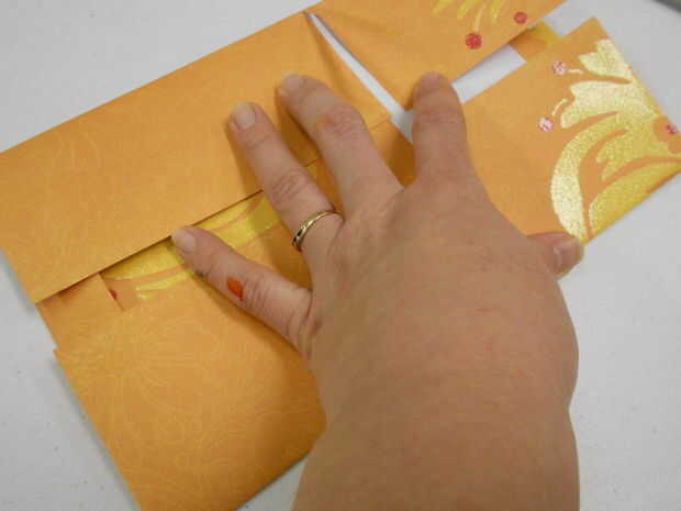 Cortar los dos lados en la parte superior para hacer el colgajo envolvente. Yo normalmente cortar aproximadamente 1/4 pulgada a la cartulina y facilidad para doblar hacia abajo no se despegan de nada.