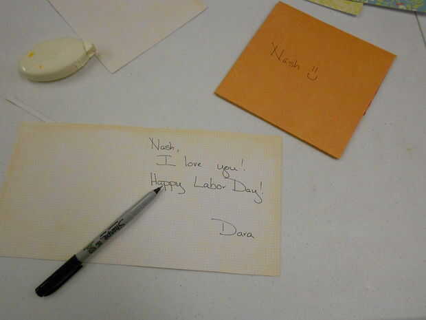 Último, escribir tu super secreto del mensaje o en este caso "te amo". (Siempre un clásico. Siempre es bueno escuchar.) Poner tarjeta en sobre y listo! Una tarjeta personalizada para usted y su ser querido. Totalmente único.