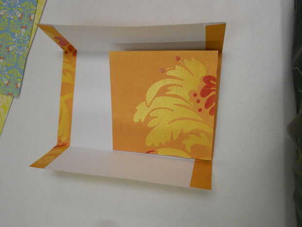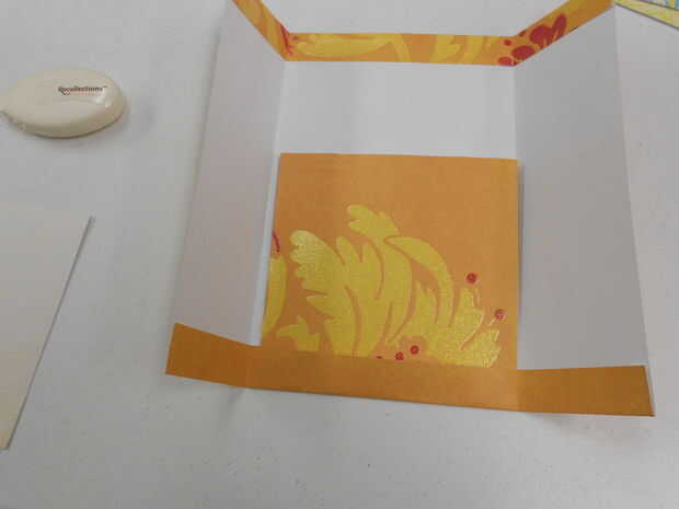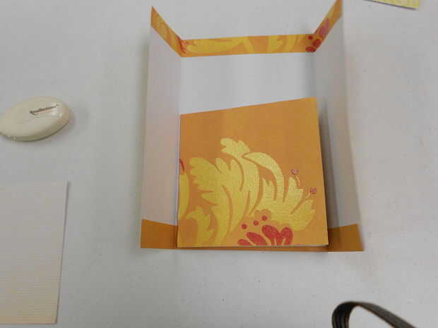Colocar su tarjeta en el centro de su envolvente y doble el papel por ambos lados alrededor de ella. Dejar un margen de la tarjeta se deslice hacia adentro y hacia afuera. No tiene que ser piel apretada.