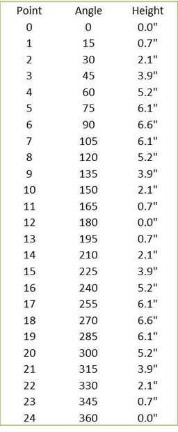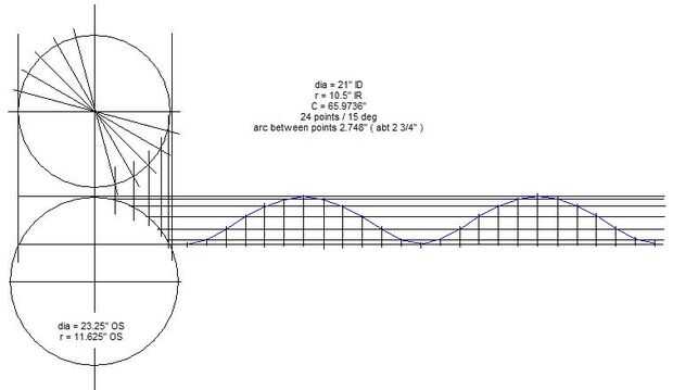 Si es mayor de lo que podría hacerse por plantilla puede utilizar las medidas de un dibujo correctamente escalados para presentar en la tubería a cortar. Simplemente mida cada línea desde la línea de base hasta donde intersecta la línea superior individual y registre la escala del mundo real en una tabla para cada punto del plano. La tabla incluye es las medidas que tengo de este programa. No es exactamente alta tolerancia cabe pero me puede llegar lo suficientemente cerca para tener cemento o soldar.