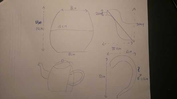 Empecé por la medición de myteapot, lo hice con mi pinza. medir todas las dimensiones crees que vas a necesitar, en la foto de arriba se puede ver que tomé (también terminé haciendo un dibujo libre, pero esta es una elección que puede hacer usted mismo).