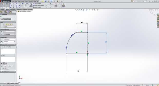 después de haber dibujado el trimestre que puede dar las dimensiones correctas usando la herramienta smart dimensiones, véase el cuadro 3