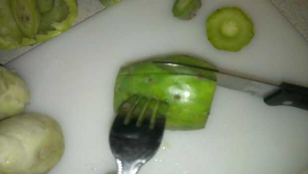 Hacer un corte desde el lado de la fruta, extremo a extremo.