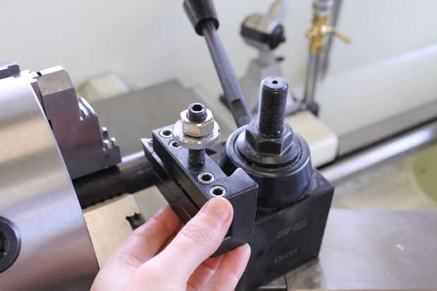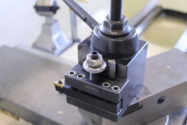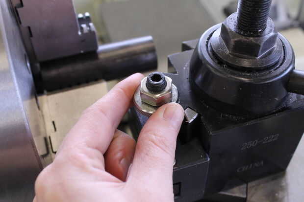 Compruebe para alinear la punta de corte de su carburo de justo debajo de la línea central de la barra de acción. Hacer cualquier ajuste a la altura de la herramienta usando los tornillos ajustables en la herramienta rápida conjunto de cambio. Apretar hacia abajo de la lavadora se abrirá la herramienta y aumentar la lavadora permitirá su herramienta bajar.