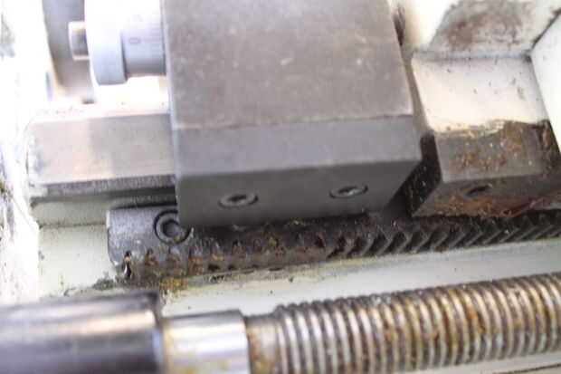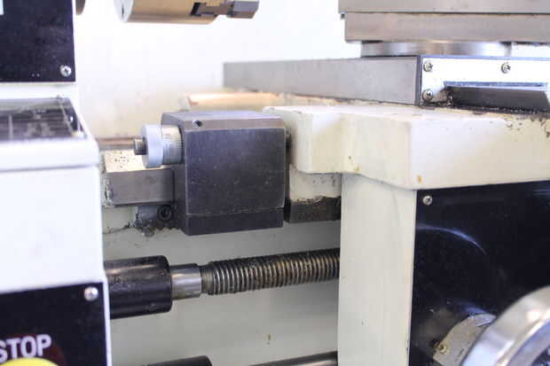 Una parada de transporte positivo le permite ajustar la longitud de su corte para que puedas hacer precisos pases repetidos bajar el diámetro deseado. El tope se ajusta con dos tornillos de allen situados en la parte inferior de la parada. La parada tiene una perilla de ajuste fino a la izquierda de él para marcado en longitudes exactas. Establecer la parada a-. 75" en hacia la tirada del final ante de mi stock.